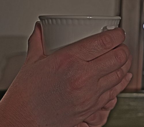 "A bögrét két kezébe fogta,